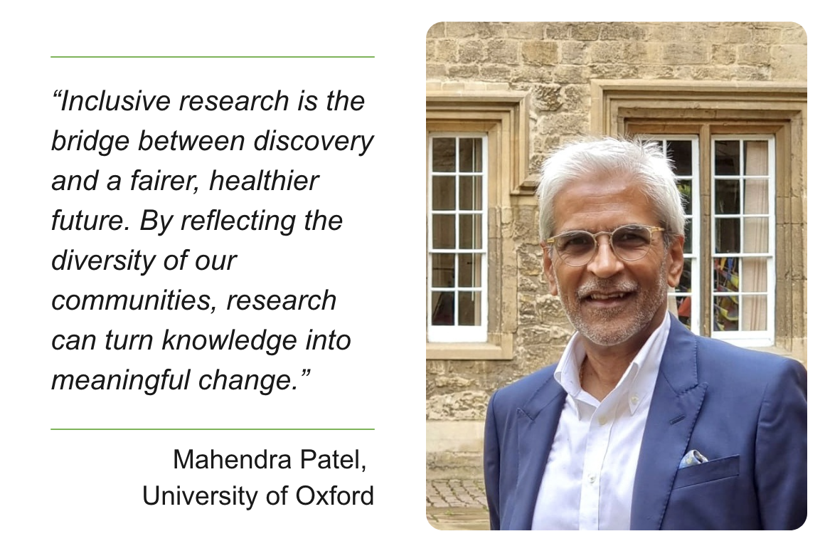 Inclusive research is at the heart of advancing equitable healthcare and few advocate for it as Professor Mahendra Patel of the University of Oxford.
