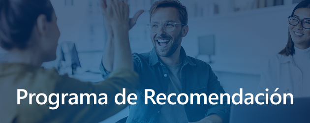 Si estás satisfecho con nuestro servicio, ¡recoméndanos a otras empresas con las que trabajes! Para tu empresa, es una oportunidad para realizar una transferencia valorada en 240 €, y para que tus colaboradores aprovechen una serie de beneficios que ofrecemos a nuestros clientes. Ganas hasta 240 € en la cuenta de tu organización si la empresa recomendada compra una licencia Microsoft CSP por un valor neto de min. 2400 €. Puedes recomendarnos a muchas empresas y luego multiplicamos el abono por el número de nuevosclientes que hemos ganado gracias a ti.